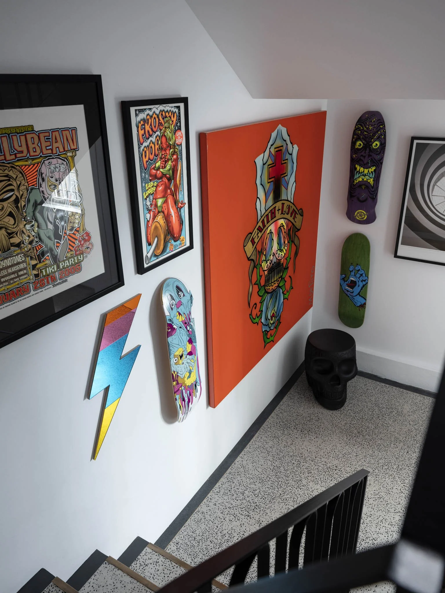 Hunt & Design transformed this second-floor space into something that feels like a beautifully appointed home — because it is one. Exposed 1900s brickwork and wooden beams. Brass, steel, and cement. Textures and surfaces that photograph beautifully from any angle. The kitchen bench alone has launched a thousand lifestyle shoots.